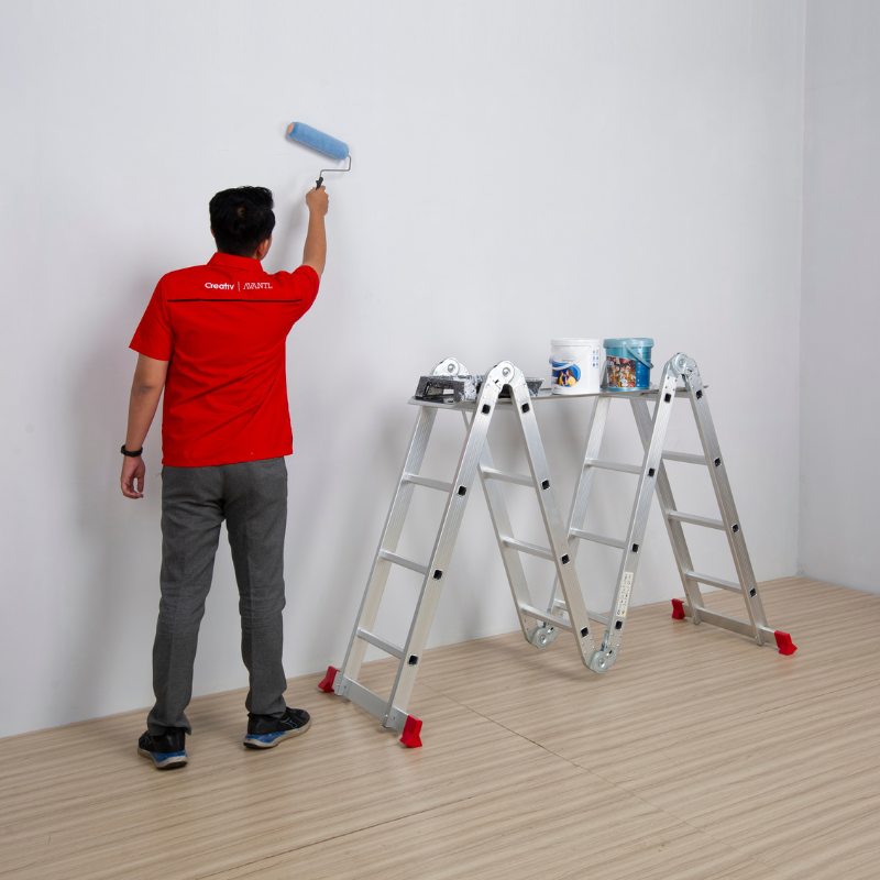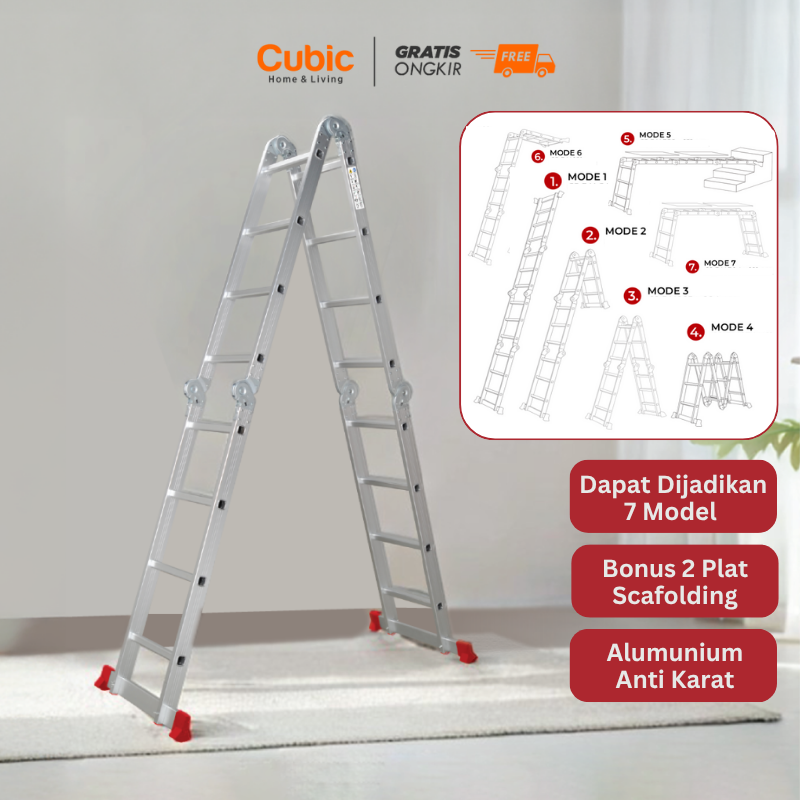 COZY LADDER 400 A merupakan tangga yang dapat memiliki 7 model yang digunakan sesuai medan/kegunaannya. Dengan fitur yang dapat dilipat, memudahkan kamu untuk menyimpan. Dengan bahan alumunium premium, tangga ini kokoh, stabil, dan anti karat. Pada bagian kaki tangga dilengkapi dengan karet anti slip sehingga membuat lebih aman dan stabil.