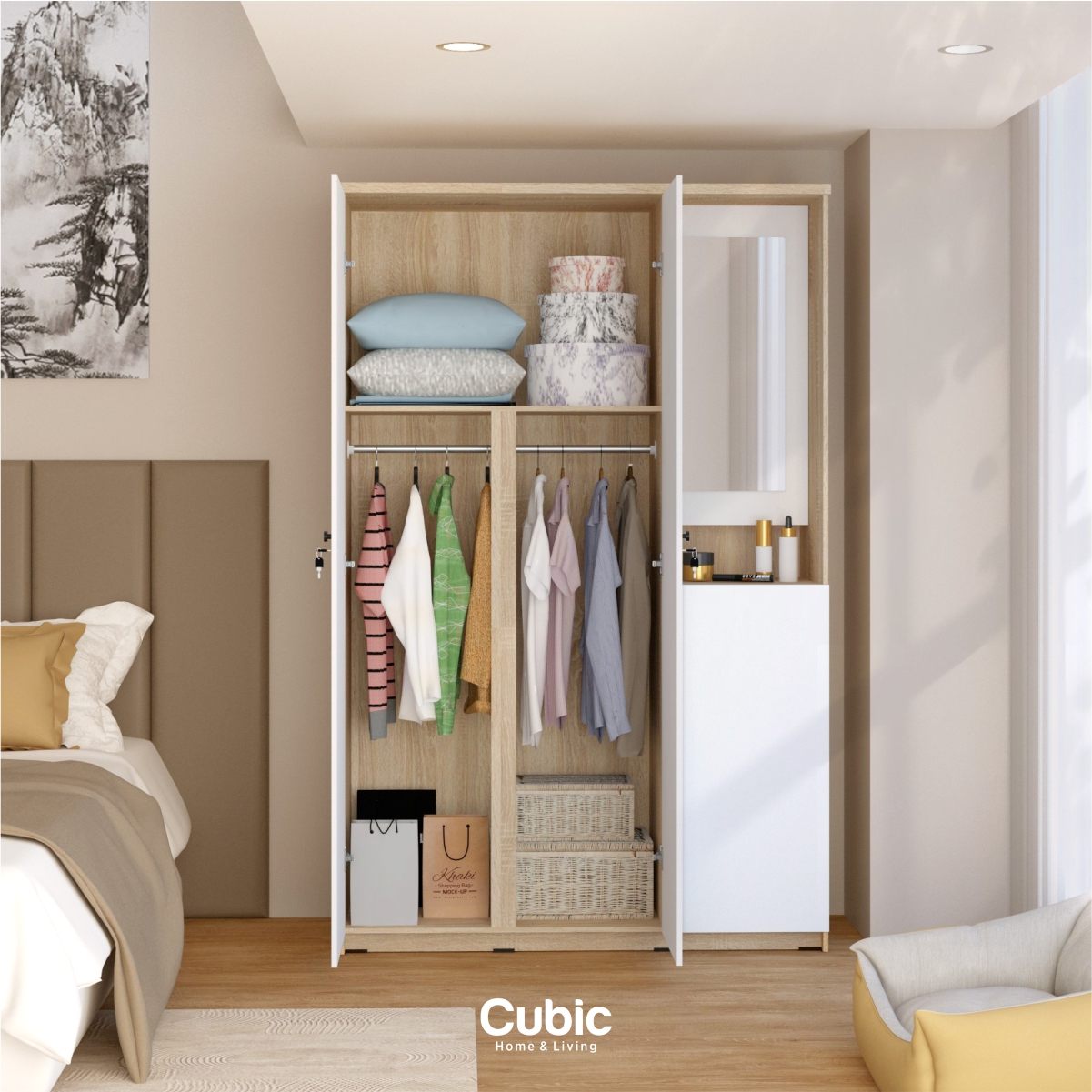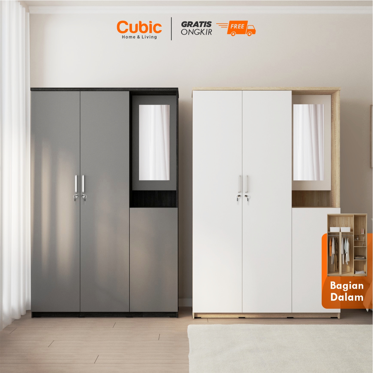 Simpan pakaian kesayanganmu di dalam lemari pakaian LUNA LPM 301 yang dilengkapi dengan rak, meja dan satu buah cermin cantik yang dapat dibuka. Lemari ini mampu menjaga pakaianmu agar tetap aman dari debu dan serangga.